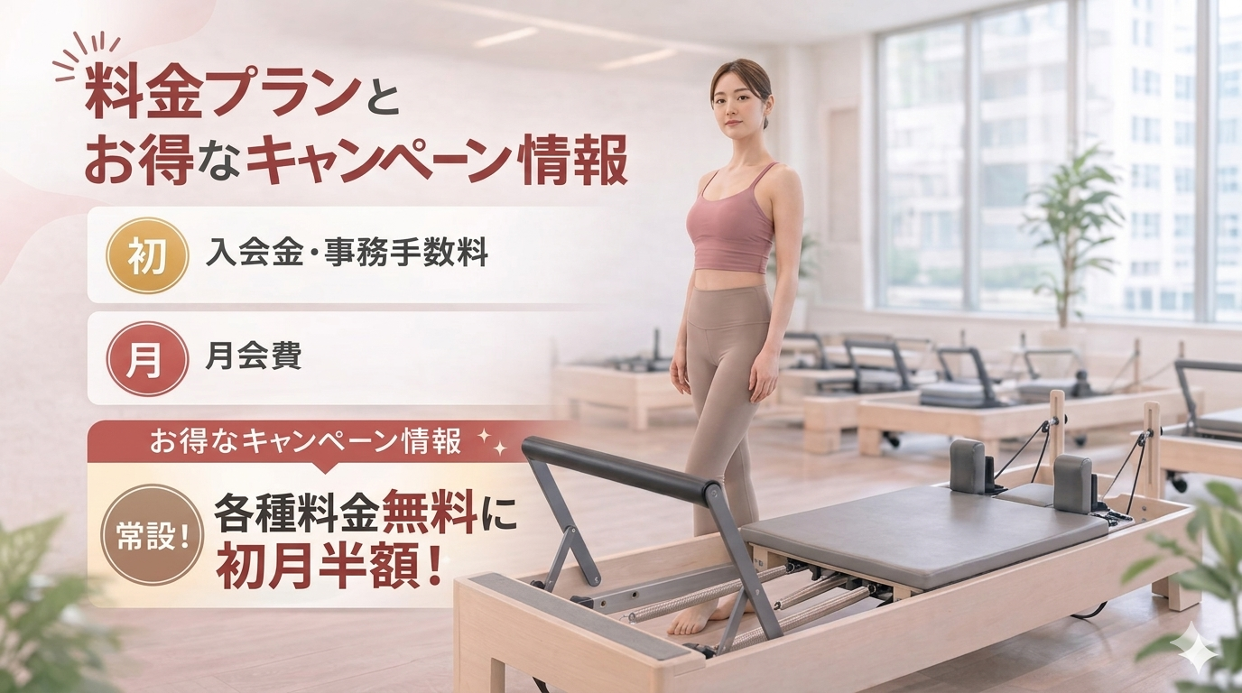 ここでは初期費用や月会費、お得なキャンペーン情報など、ピラティス Kの価格面を詳しくご紹介していきます。
